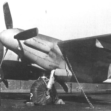 Mosquito FB.Mk XVIII : Modification of the FB.Mk VI, fitted with a 57mm Molins cannon, rocket projectiles and increased armour; used primarily against submarines and ships.