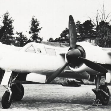 The assembly line for the Ta.154A-1 was set up in Posen, but the first two production aircraft (KU+SN and KU+SO) were built in Erfurt. The second flew on June 13, 1944, but on June 28, it crashed after a wing broke off in flight. Tank immediately stopped wing production. A thorough examination of the wing fragments was conducted to determine the cause of the incident. It quickly became clear that the cold gluing process used in production was causing warping of the skin. These problems did not occur on pre-production aircraft, which used Goldmann Tego-Film adhesive, but the Goldmann plant was destroyed by a British bomber raid on Wuppertal almost immediately after Ta.154A production began. The new adhesive had not been sufficiently tested, and the plywood gluing defect was not detected.