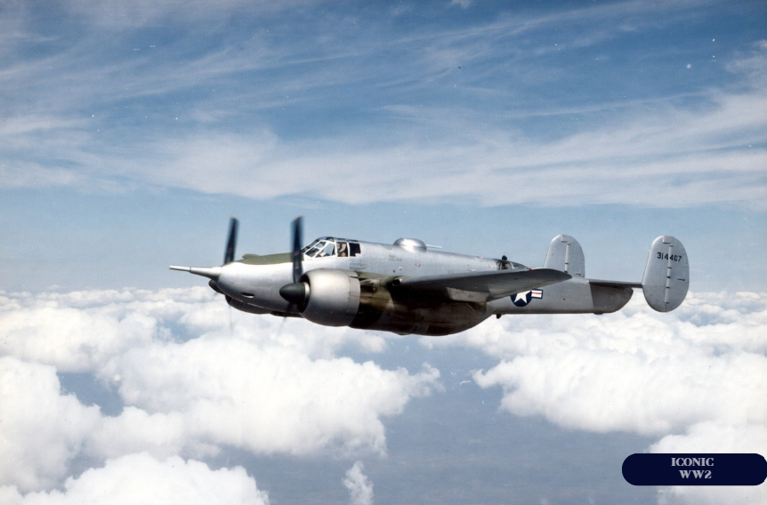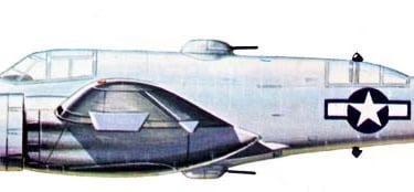 American designers had their own vision for a fire support aircraft, and the XA-38 was a fairly large, twin-engine, all-metal aircraft. Armor, unlike that of the Il-2 and Hs-129, was minimal. The main attack weapon was the 75mm T9E1 (M10) cannon, mounted in the nose, forward of the cockpit. For forward firing, there were also a pair of large-caliber M-2 (12.7mm) machine guns mounted beneath the cannon. The gunner sat in his cockpit behind the wing and remotely controlled two turrets—one above and one below the fuselage—each with a pair of M-2 machine guns, aimed via a periscope. Additionally, four underwing racks could carry bombs totaling up to 907 kg, or additional fuel tanks.
