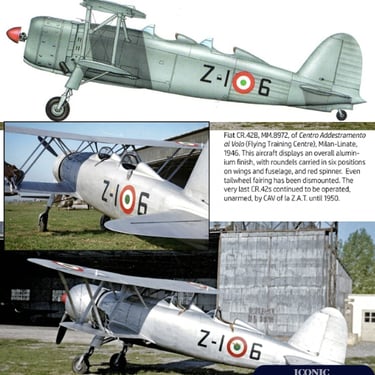 Sixty-four Fiats survived the war in good condition. Some were sent to training centers for the new Italian Air Force. Two dozen were even converted into two-seaters with dual controls. The last CR.42s, the last biplane fighter in history, were retired in 1950.