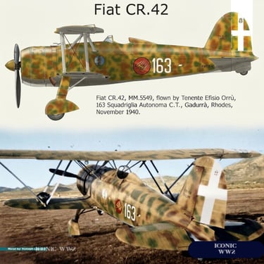The Fiat, with additional fuel tanks and navigation equipment, became the CR.42 Egeo long-range fighter, capable of protecting bombers and torpedo bombers over the Mediterranean.