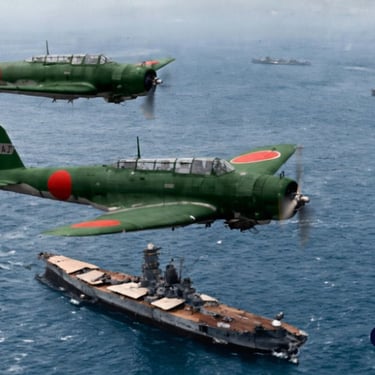 Early in the morning of July 5, 1942, two waves of B5N2 bombers pounced on Midway's shore installations. The attacks by American shore and carrier-based aircraft were easily repelled by the Japanese. They then prepared to strike the American carriers, but at 4:25 p.m., five Dauntless dive bombers from the carrier Enterprise penetrated their cover, and by the end of the day, all four Japanese carriers had been sunk, at the cost of the carrier Yorktown. After such a crushing defeat, the Japanese retreated, but more important than the loss of aircraft and ships was the loss of over 50% of their trained aircrews. They never recovered.