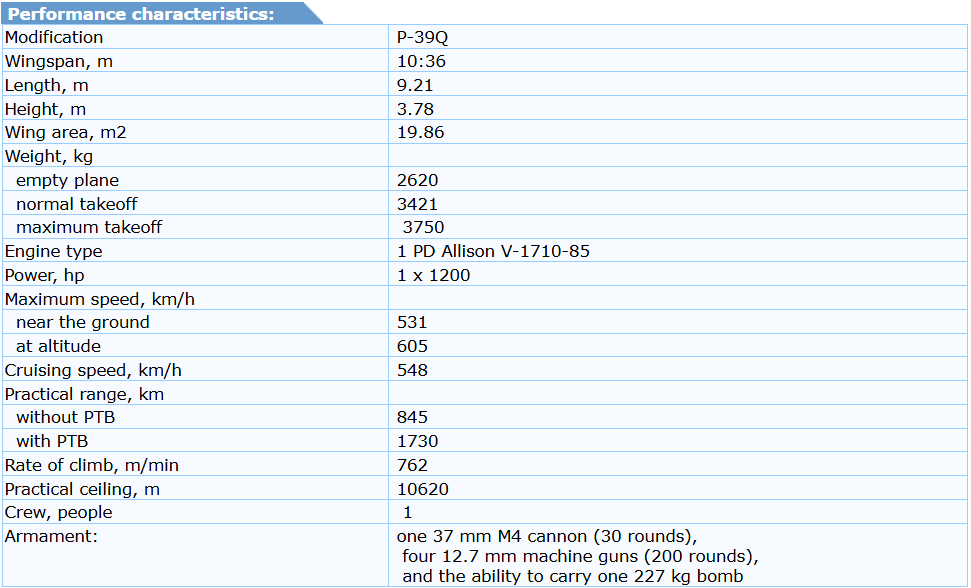 Soviet pilots and commanders quickly discovered that the aircraft’s weaknesses at high altitude were far less relevant on the Eastern Front, where most air combat occurred at low and medium altitudes (typically below 15,000 feet) in support of ground operations. In this environment, the P-39 excelled: it was rugged, had excellent visibility, good low-altitude maneuverability, and devastating forward firepower from the nose-mounted 37 mm cannon and .50 caliber machine guns. Many Soviet units removed the underwing .30 caliber guns to reduce weight and improve performance.